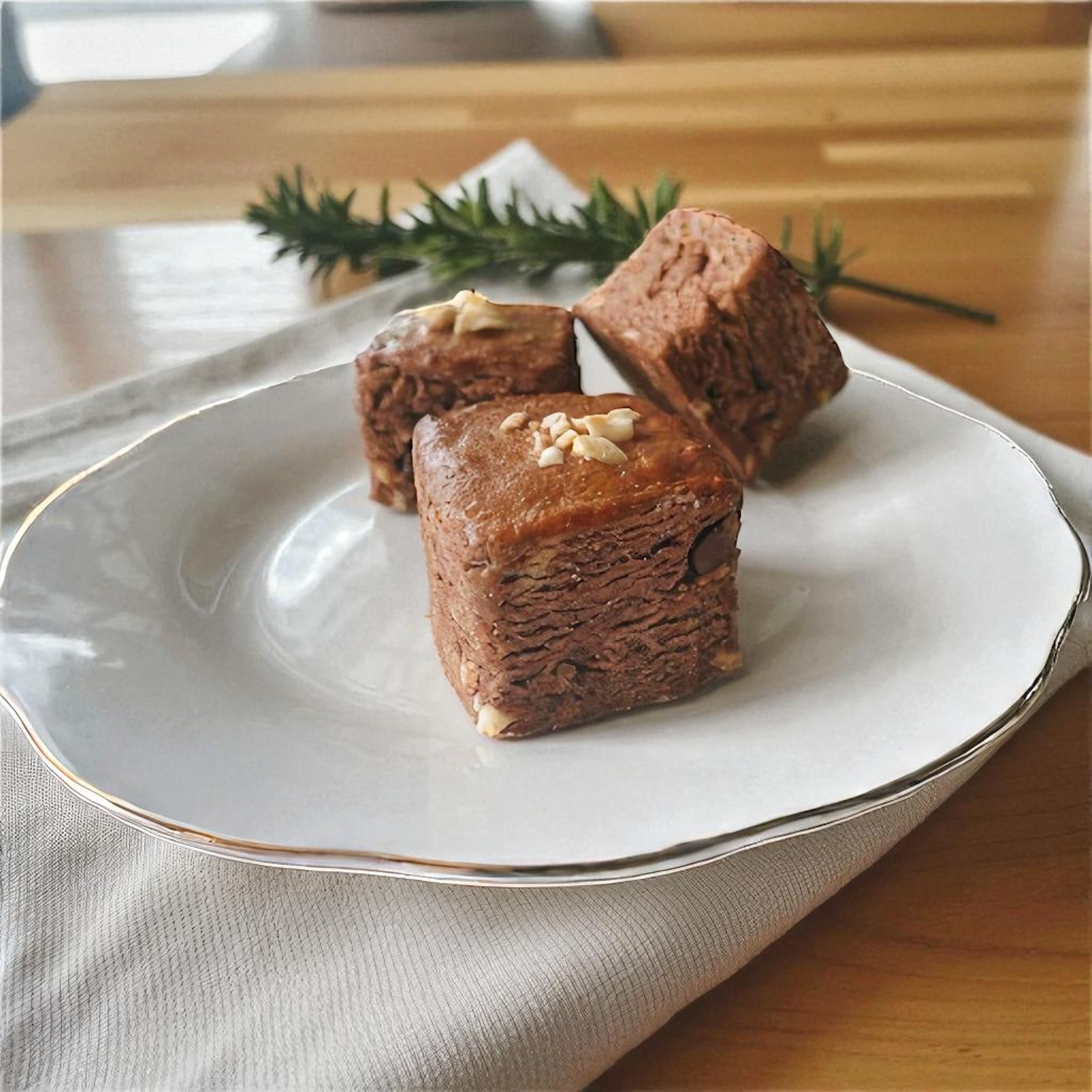 キャラメリゼしたピーナッツの香ばしいプラリネとチョコレートがマッチした濃厚な味わいのスコーン.