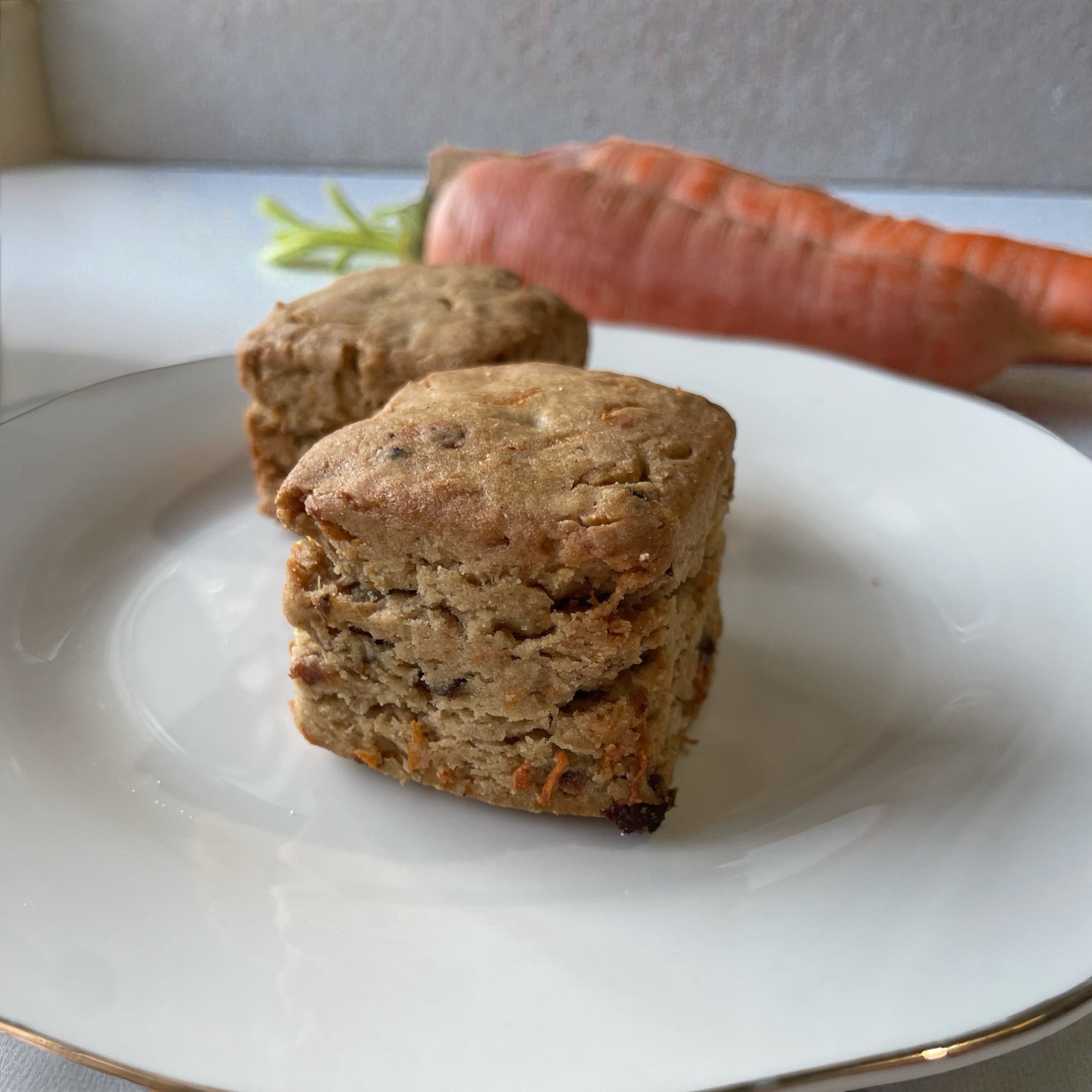 食感も楽しめるよう千切りした人参とスパイス、レーズンやクルミを混ぜ込んだ、キャロットケーキのような味わいのスコーン.