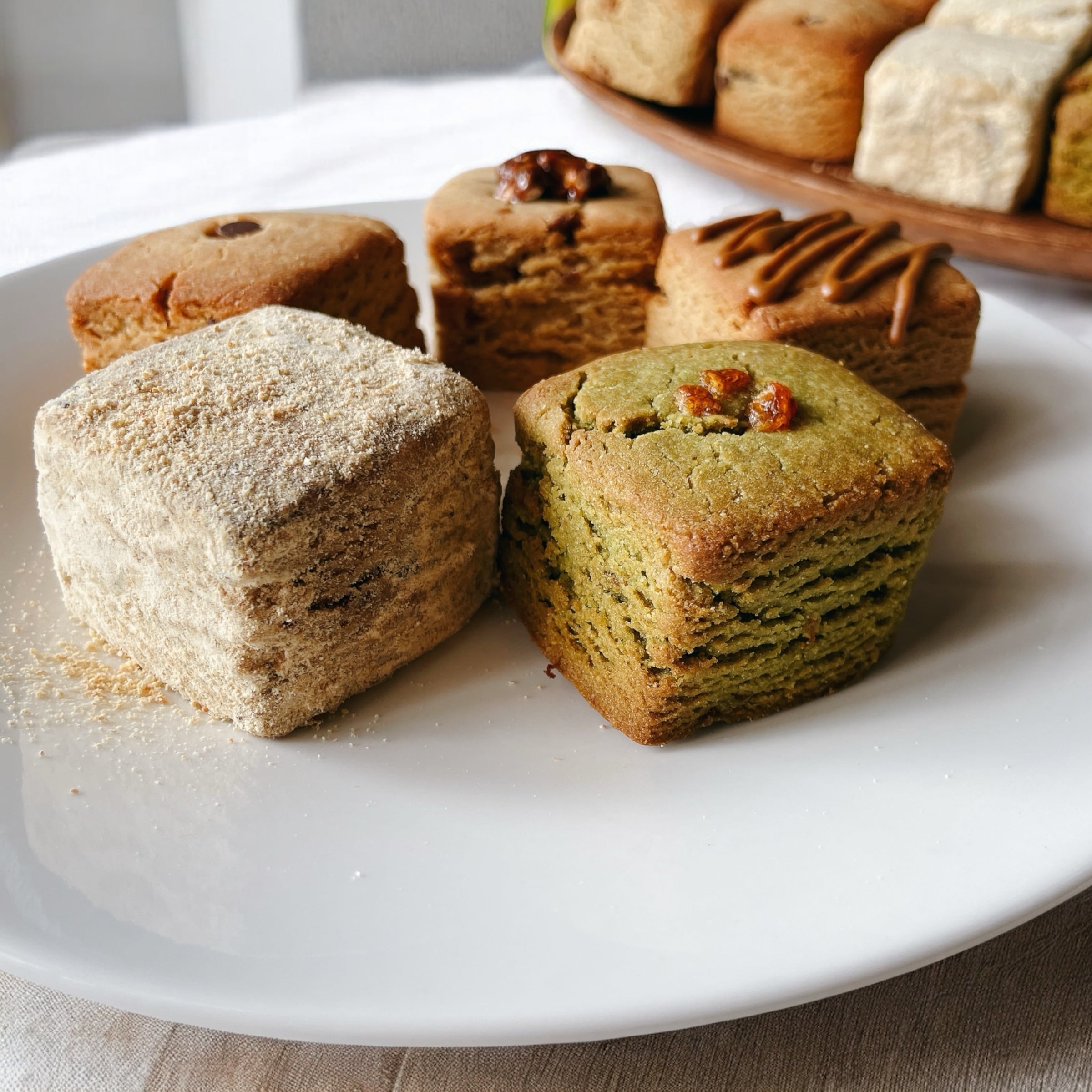 自家製柚子ピールの爽やかな香りと抹茶のほろ苦さの組み合わせで上品な味わいのスコーン.