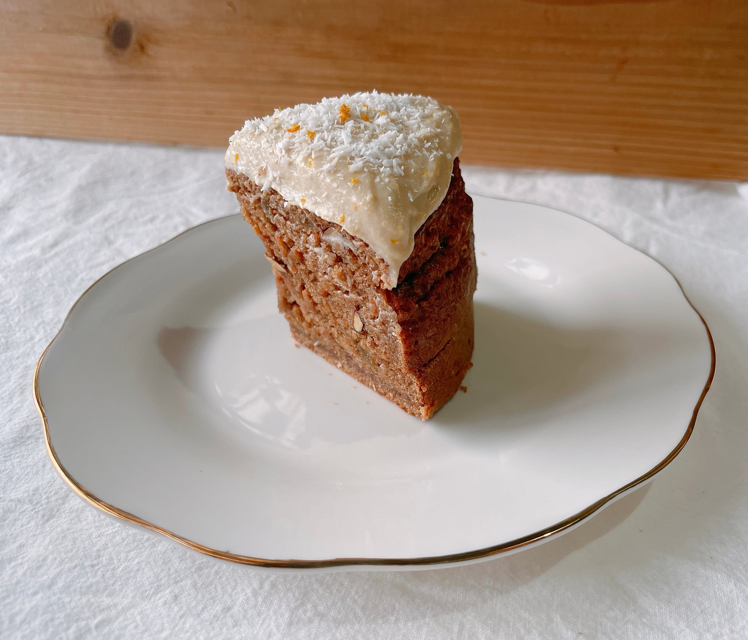 キャロットケーキのフロスティングを思わせるチーズクリームは、自家製大豆から作る豆乳と有機ココナッツミルク、酒粕等で作り、体に優しい味わいになっております.