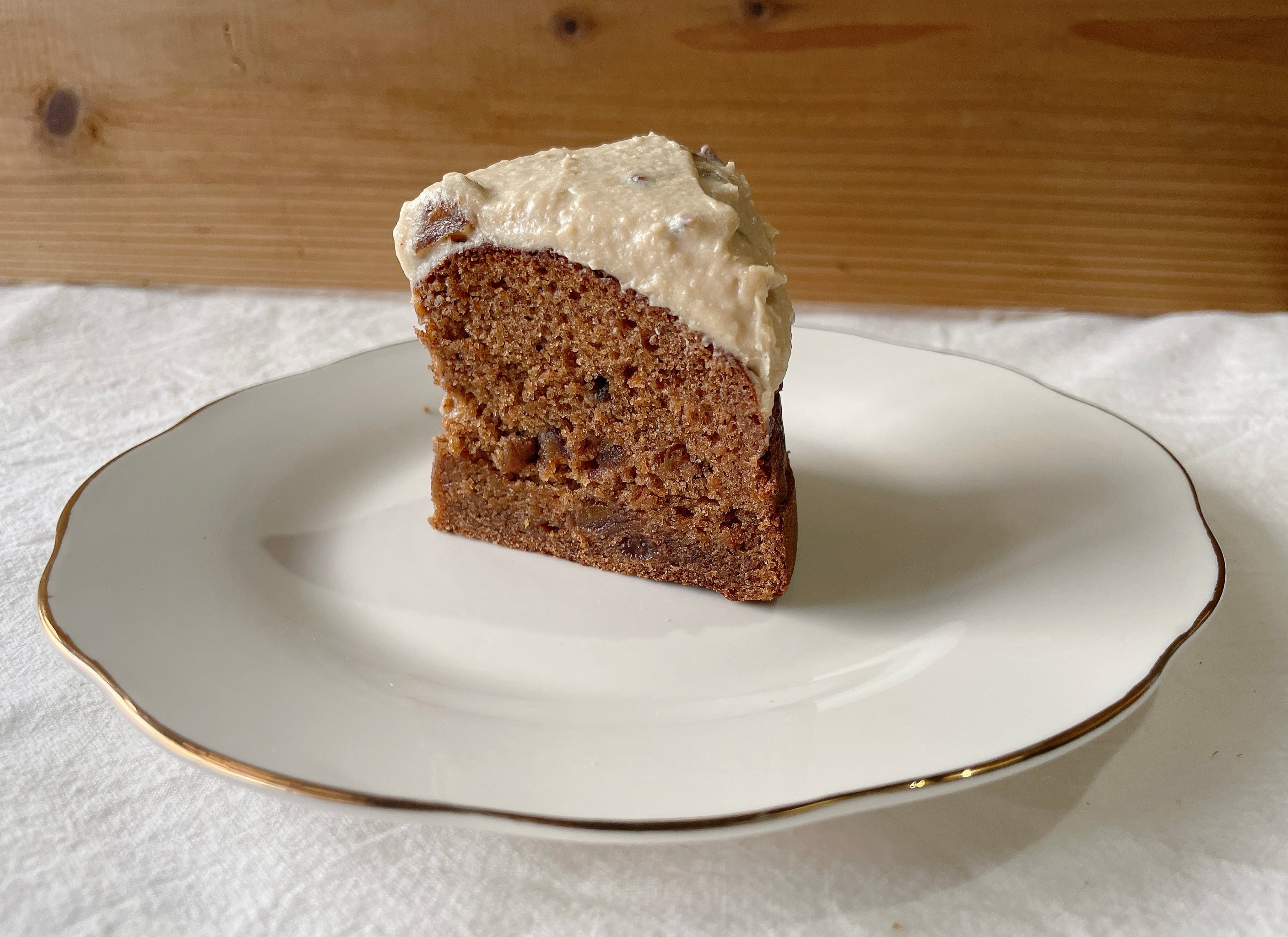 干し柿とレーズンが主役のケーキに、酒粕と干し柿の相性で濃厚な味わいのフロスティングをトッピング.よりスパイスの香りを引き立たせています.