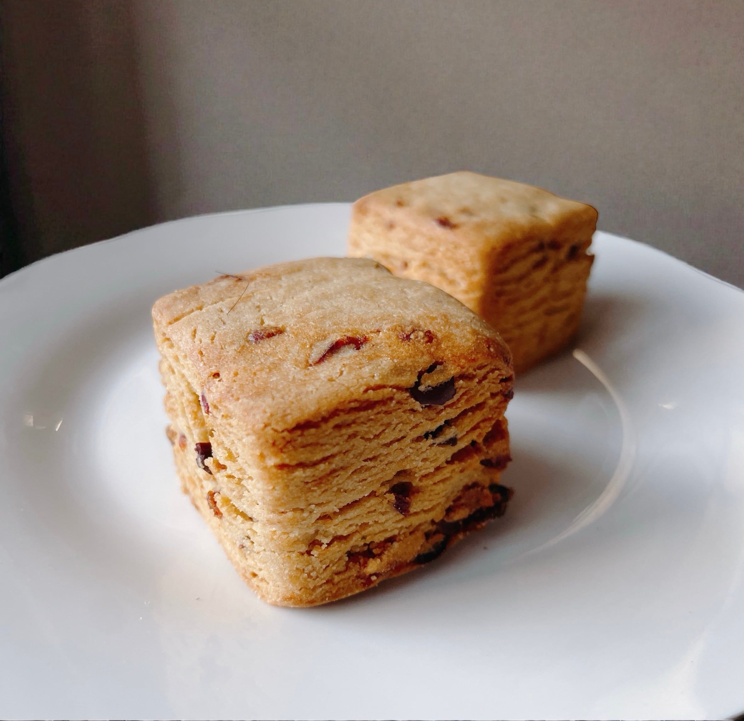 ドライクランベリーとカカオニブのスコーン.甘酸っぱい味わいとほろ苦くカリッとしたカカオニブの食感を楽しめます.