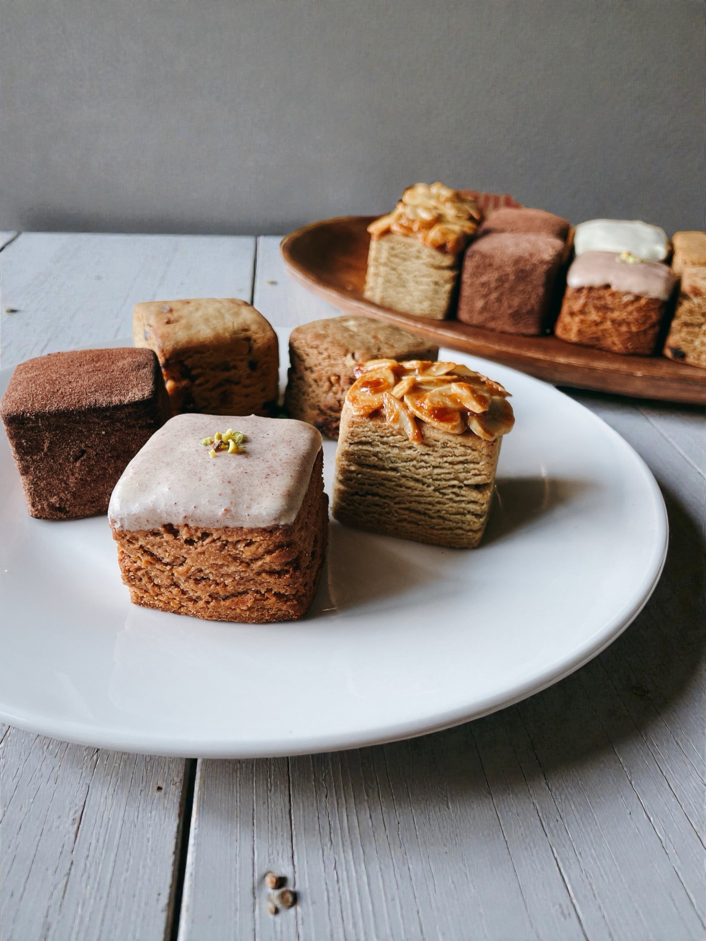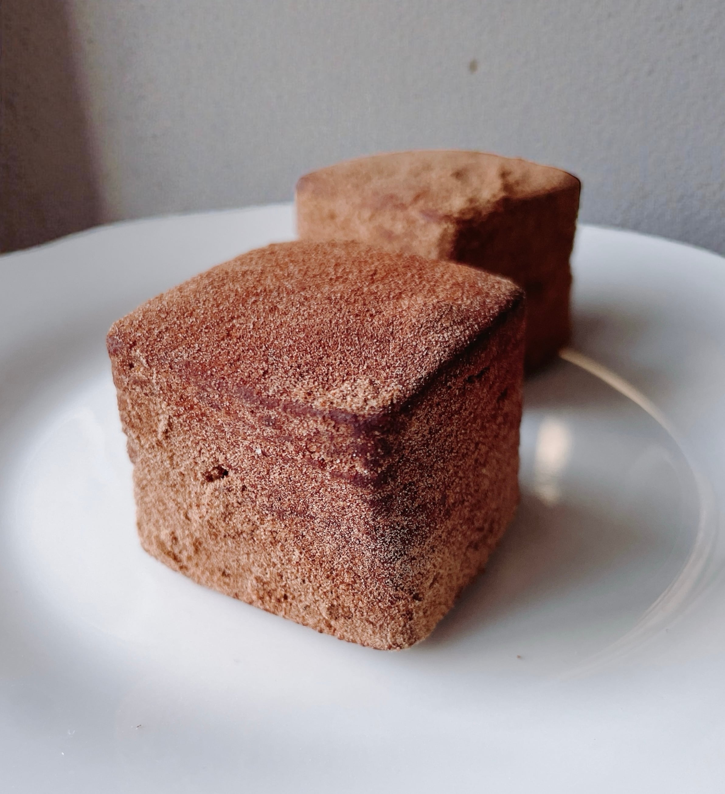 酒粕を混ぜ込んで焼き上げて、ココアパウダーを纏わせた、ほろ苦く深い味わいのトリュフ風スコーン.